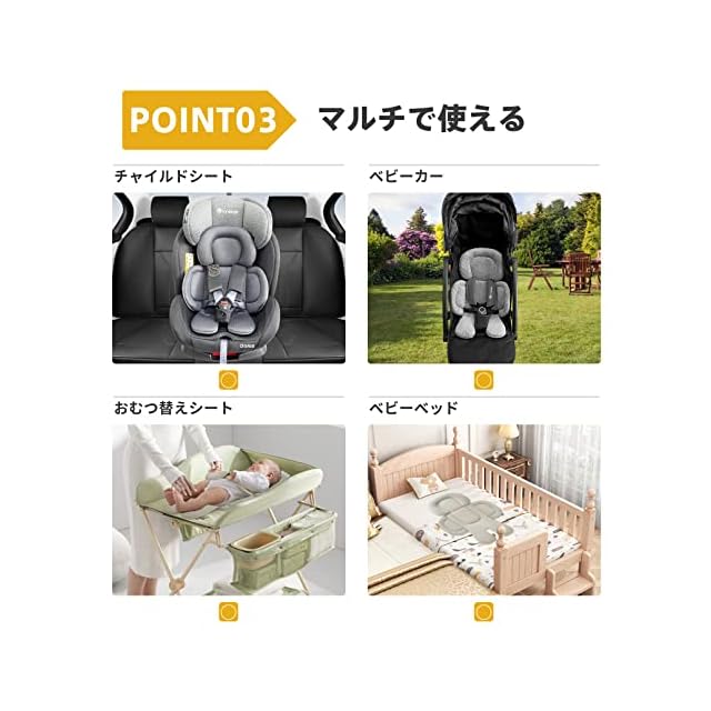 [様々なシーンで活躍]ベビーカーだけではなく、チャイルドシート、ベビーチェアやバウンサーにもお使いいただけます。外出時のベッドやおむつ交換マットとしても使えます。