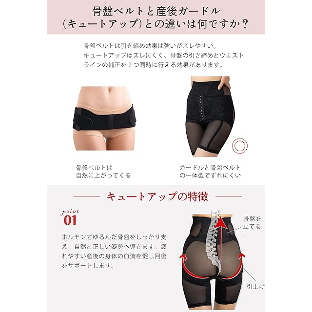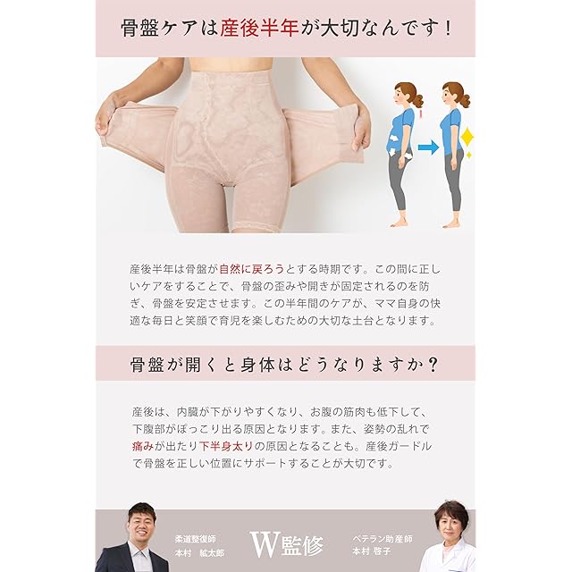 【骨盤ベルトとガードルの2つの役目】 骨盤ベルトとガードルのW効果で、ズレにくく使いやすい。 産後の骨盤を正しい位置の戻します