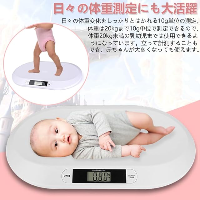 デジタル ベビースケール 赤ちゃん 赤ちゃん用デジタル体重計 電子デジタルスケール 体重計 10g単位 風袋引き機能 単位変換 高精度 受け皿付き 薄型軽量 ベビー体重計 授乳 赤ちゃん 体重計 新生児用 出産祝い 最大荷重20kg 凹面デザイン ペット体重計 育児 新生児/大人/犬/猫/秋田犬/柴犬/うさぎ用 (ホワイト)