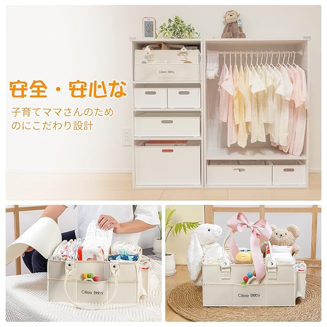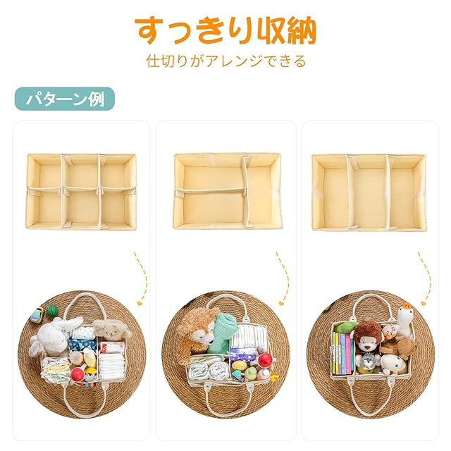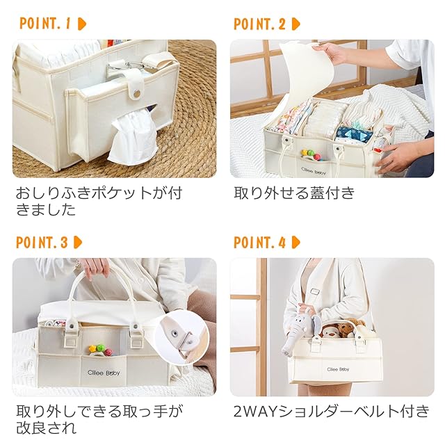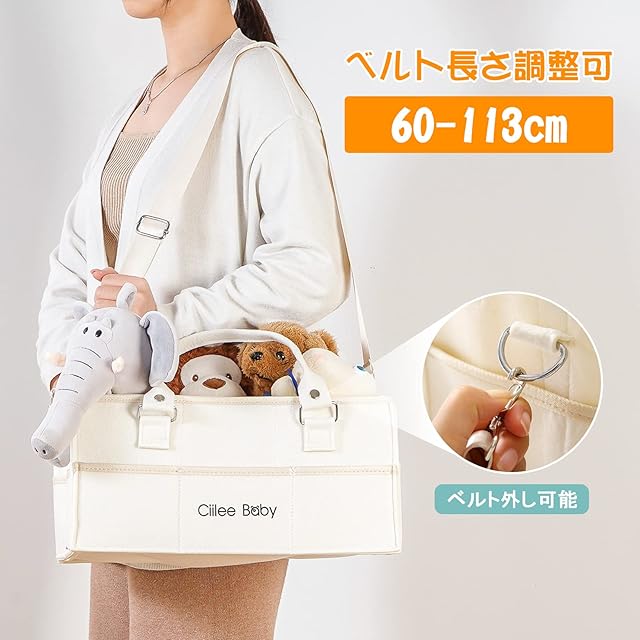 【蓋&ショルダーベルト付きのバージョン】外からみてもきれいに見えます。マジックテープが強化されており、接着力が強くなっています。 使用しないときは、折りたたんで保管することができるためスペースを節約できます、ポリエステル繊維は汚れに強く、お手入れが簡単な収納袋の内側に追加しました。 底板は強くて厚いので、形崩れをおこしません。 収納バッグの取っ手は、ベビーベッドや洗面所に簡単にぶら下げるための長くしています。
