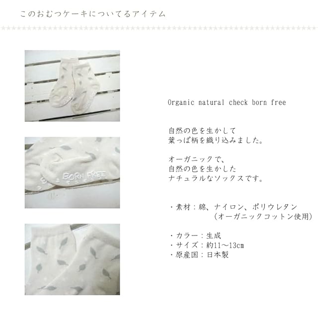 オーガニックコットン リーフ柄 ソックス キナリ色 (約11~13cm)★×1