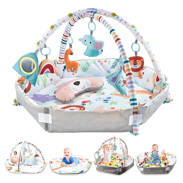 REMOKING ベビージム ベビープレイマット 赤ちゃん おもちゃ 動物の形 枕 厚み (六角形)