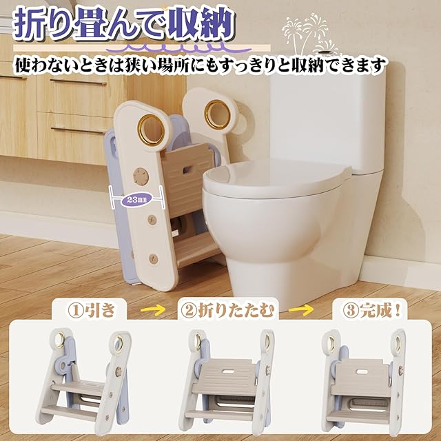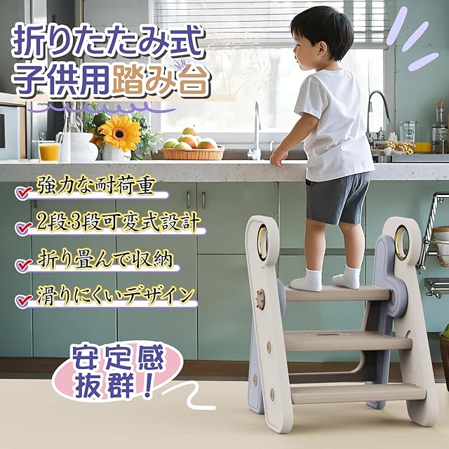 踏み台 子供 折りたたみ ステップ 子供用 滑り止め キッズ踏み台 2段3段可変式 ハンドル付き キッズステップ 丈夫 手洗い 洗面所 トイレ ふみ台 登り台 おしゃれ (ブラウン)