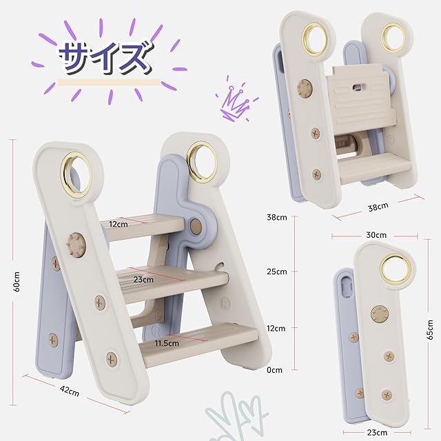 「幅広く使える」:何でもやりたがる年頃のお子様に大活躍!軽いので洗面所、キッチンに自分で持って歩きたのしんでき、椅子の様に使いトイレの踏み台、お風呂にも使いできます。耐荷重75㎏で、大人でも踏み台として使用可能な強度となっています。