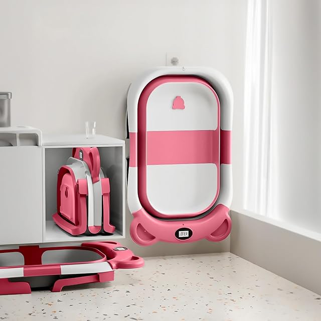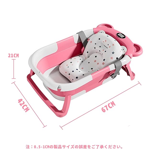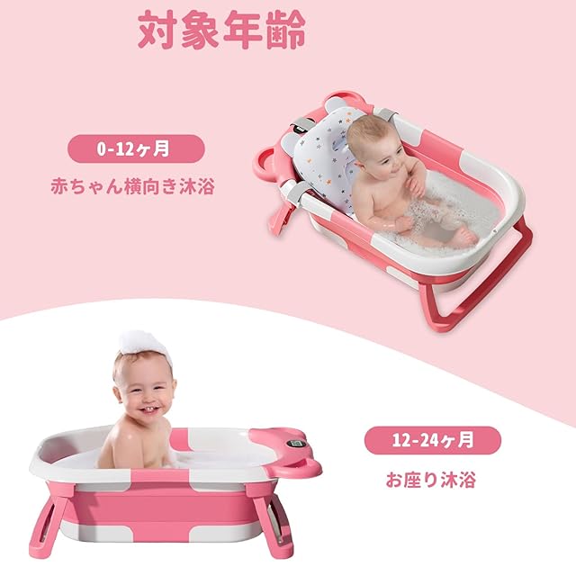 UBRAVOO ベビーバス 折りたたみ 湯温計付き 滑り止め バスクッション付き 簡易収納 ベビー 赤ちゃん お風呂 浴槽 バスタブ 沐浴 シンク 新生児 0~36ヶ月 (ピンク)