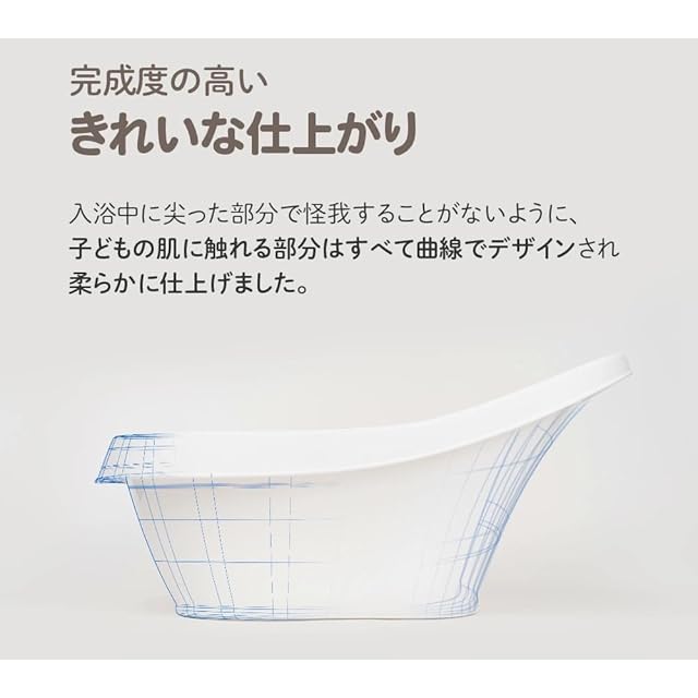 【安心・安全】 子供の肌に触れるものだから安全認証テスト済み。人間工学的な設計で作られたピーナッツ形状の浴槽は事故を防ぎ、お子さまを包み込みます。浴槽の底部に施されたエンボス型滑り止めパッドは、お風呂中にお子さまが動いても揺れることなく、安定性に優れています。