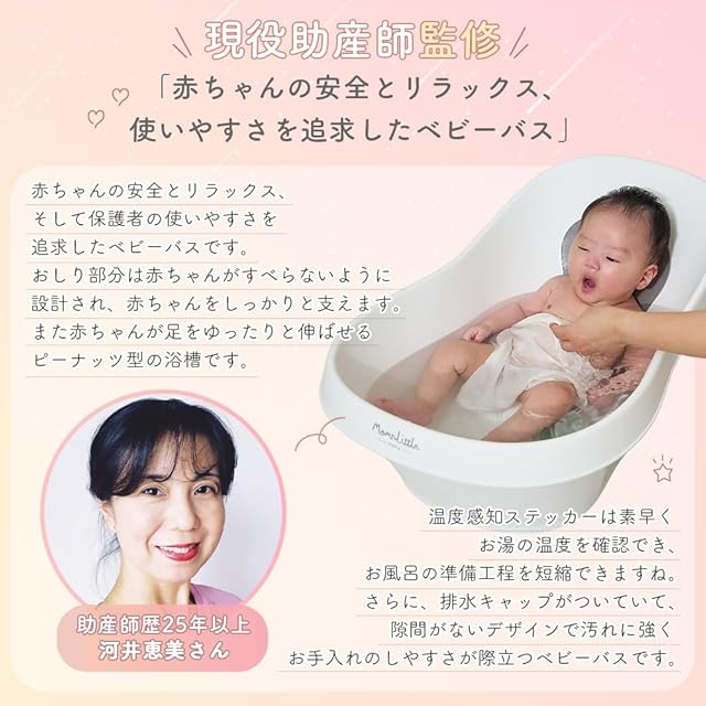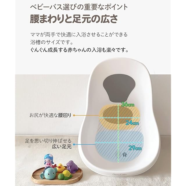 Momnlittle ベビーバス ベビー お風呂 赤ちゃん 新生児 バスタブ 浴槽 湯温計付き 滑り止めパッド 温度表示 桶 たらい ペットバス 安全バンパー