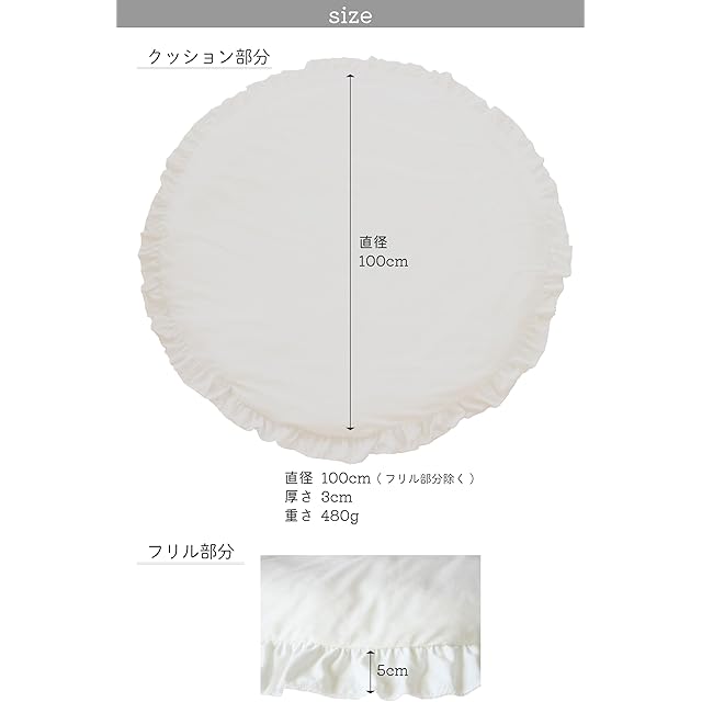 [ふんわりソフトコットン100%]ankley(アンクレー) サニーマット ベビーマット プレイマット 円形マット フリル 新生児から 綿100% 月齢フォト 洗える 出産祝い ギフト (ホワイト)