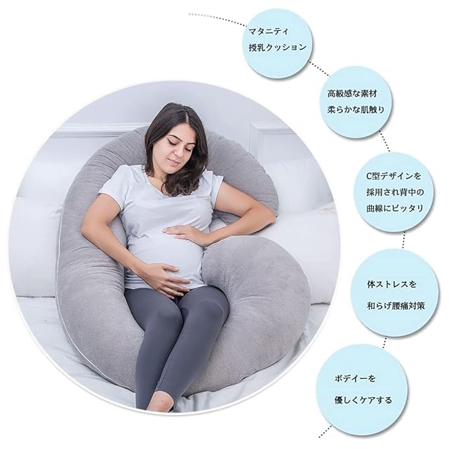 C型抱き枕 妊婦 人気 マタニティーだきまくら 授乳クッション 背もたれ ふわふわ包み込む 横向き寝 抱きまくら 大きい 妊娠プレゼント 取り外し可能なカバー付き(グレー)…