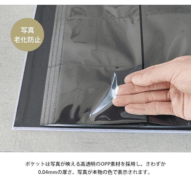 透明度の高いフィルム: 透明度の高いフィルムにより、写真が本物の色で表示されます。また空気に触れることが少なく、写真の劣化や酸化を防ぎます。長時間の保管におすすめです。切手、領収書、メディアやパンフなどが整理できる便利な多機能フィルム。
