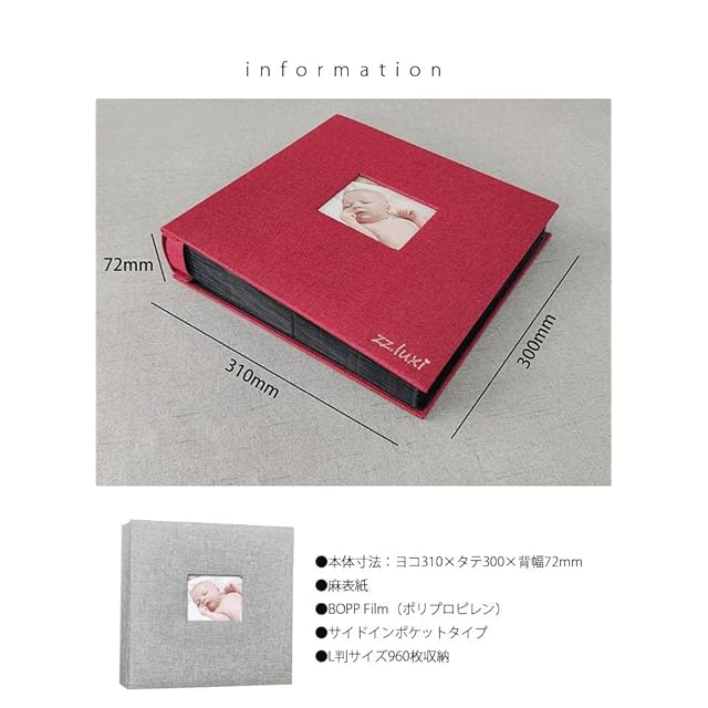素材:麻表紙+ポリプロピレン、シンプルなデザインで、耐久性も抜群です. ●表紙のフレーム部分にお気に入りの写真を入れて、お部屋のインテリアとして棚に飾るのもオススメ。時期やシーン別でアルバムを分けていれば、一目で内容もわかりやすくなります。お子様が成長するにつれ、フレームが変わっていくのを見るのも楽しみになります。
