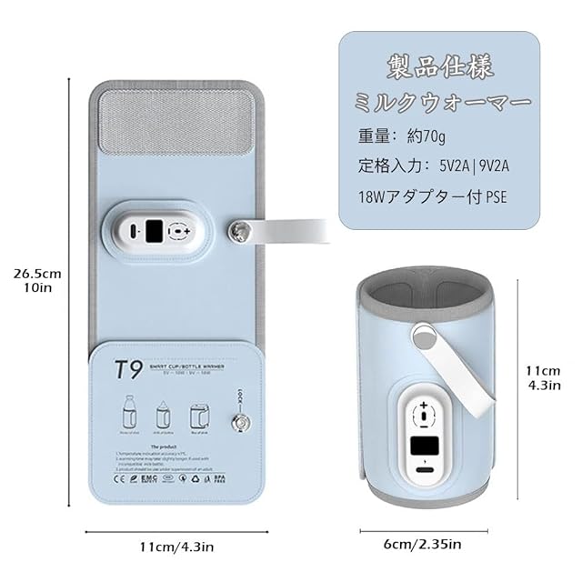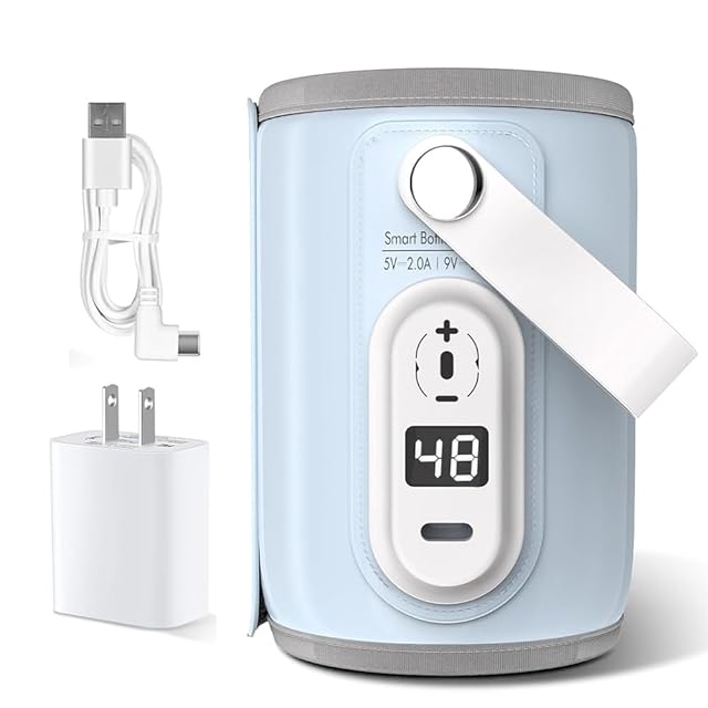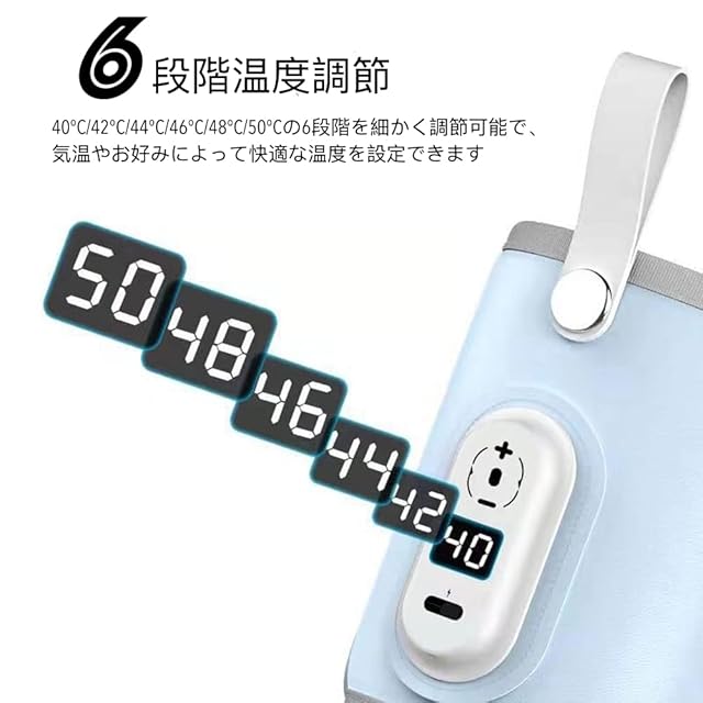 Bacany ミルクウォーマー 6段階温度調節 18Wアダプター付き 哺乳瓶ウォーマー 加熱 保温 ボトルウォーマー 軽量 持ち運び簡単 USB給電 哺乳瓶カバー 温乳器 PSE認証済み 日本語説明書付属 (ブルー)