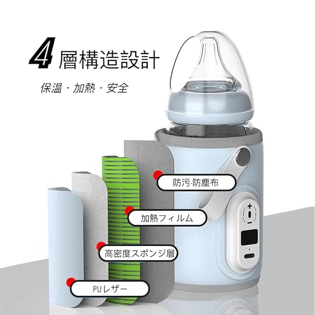 【良質な素材・手入れ簡単】ボトルウォーマーはとても軽く、重量わずか70g、持ち運びが簡単です。ミルクウォーマーの内側は良質のポリエステル繊維でできており、ボトルをやさしくホールドします。外側はPU素材を採用し、汚れてもさっと拭き取れます。(※故障の原因となりますので、濡れたまま洗わないでください)