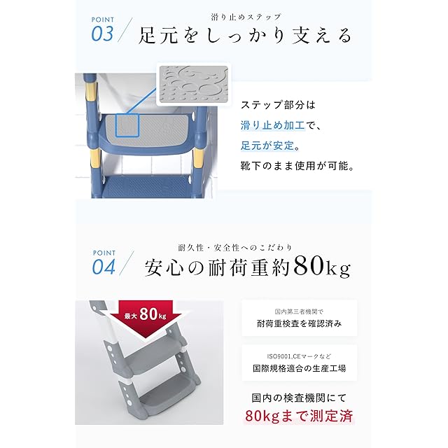 ✅【ズレずにピタッ!の快適設計】裏面に滑り止めがあり、便座と床にぴったりと密着してズレ防止。安心した使い心地で、床も傷つけません。【足元をしっかり支える】ステップ部分には、シリコン製の滑り止め加工。ツルツルした面が少なく、足元が安定します。靴下のままでもお使い頂けます。