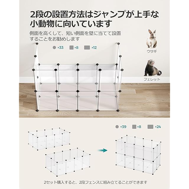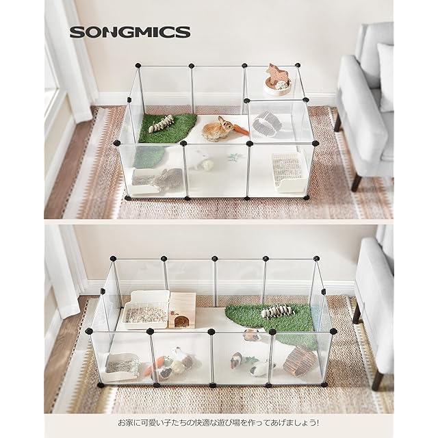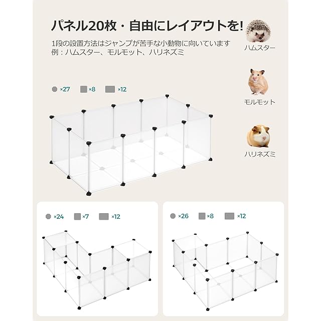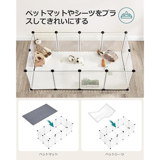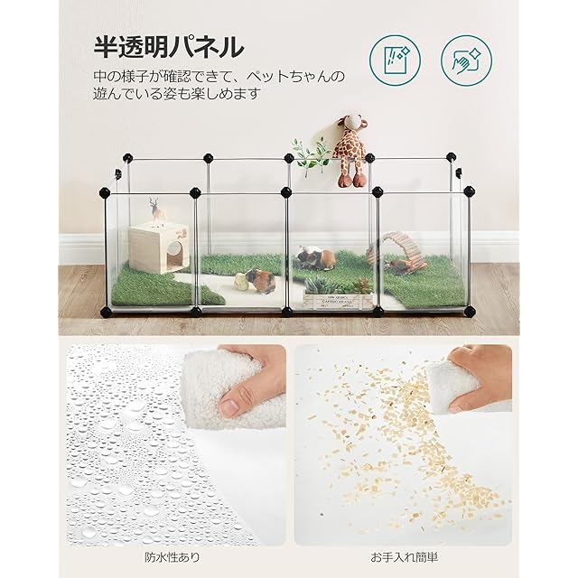 【ストレスなしの透明パネル】お互いに見える透明パネルなので、ペットちゃんはイライラせずに、フェンスの中で楽しく遊べます。また、ペットちゃんの遊んでいる姿を見て、癒しの一時にもなれます。ハリネズミ、ハムスター、モルモット、うさぎ、テンジクネズミ、フェレット、小型犬などの小動物に適します