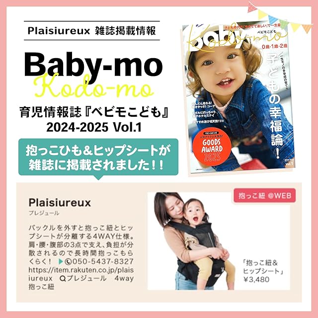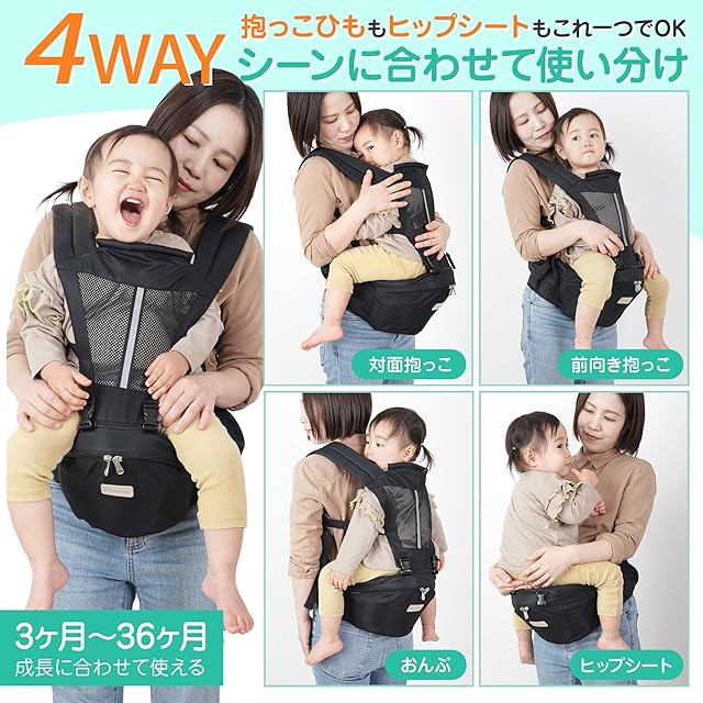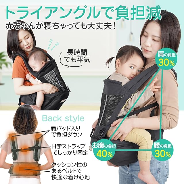 【商品仕様】 ○対象年齢:3ヶ月~36ヶ月まで ○ウエストサイズ:約60cm~最115cmまでベルト調節可能(多少の誤差あり) ○カラー:ブラック 、グレー、ダークグレー○耐荷重:20kgまで ○仕様:抱っこひも&ヒップシート分離型、男女兼用、反射板付 ○付属品:説明書付 ○ブランド:Plaisiureux(プレジュール)