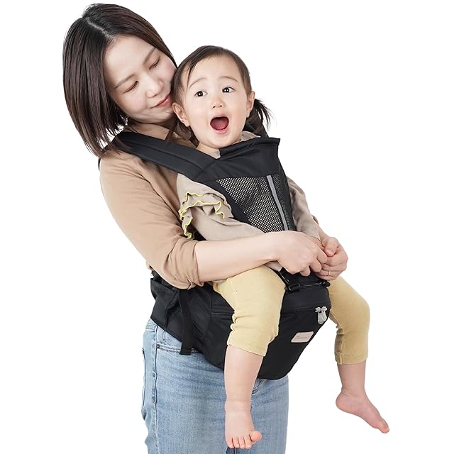 【保育士推薦×ベビモこどもに掲載】ヒップシート 抱っこ紐 抱っこひも だっこひも おんぶ紐 ベビーキャリア ウエストポーチ バッグ 赤ちゃん plaisiureux(プレジュール)(ブラック)