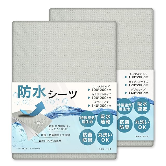 BLACK BADGER 防水シーツ シングル 【2枚セット・空気層生地】おねしょシーツ 敷パッド 介護用対応 防臭 抗菌 防ダニ 丸洗い可 四隅ゴム付き 防水パッド おねしょパッド 失禁対策 (グレー・100×200cm)