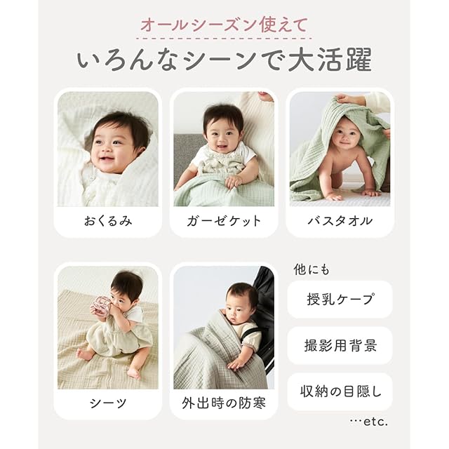 【素材】コットン100%(6重ガーゼ) 【サイズ】105×105cm(正方形タイプ)◎オールシーズン いろいろなシーンで重宝します。◎おくるみ ◎ガーゼケット ◎バスタオル ◎シーツ ◎外出時の防寒 その他、授乳ケープ、撮影用背景、収納の目隠しなどにもご利用いただけます。