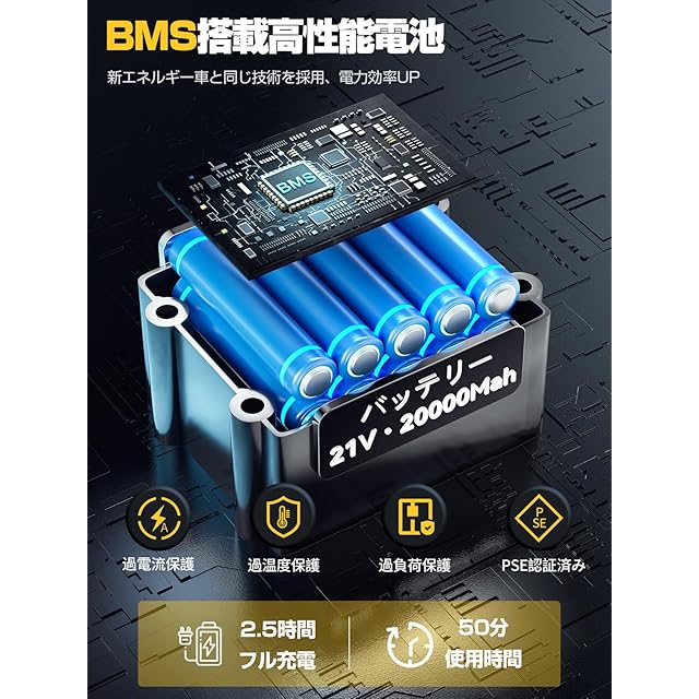 【20000mAh大容量バッテリー・マキタ18V互換バッテリー】 高圧洗浄機は充電式コードレスだからどこでも使えます!大容量バッテリー20000mAh(PSE認証済み)、新エネルギー車と同じ技術を採用、電力効率UP!最大50分間連続稼働が可能、ベランダや浴室の掃除など狭い範囲や電源コードが届かない場所を掃除する人に最適です。マキタ18V互換バッテリーも可能です。注意:【電圧:<18V~21V、電流:11A~12A】の範囲内ではないと、かなりの確率で基板が焼けてしまいます。