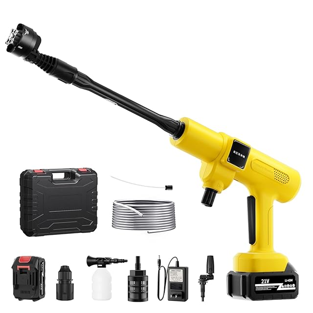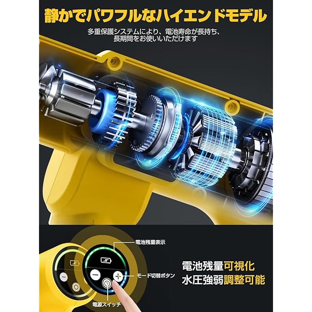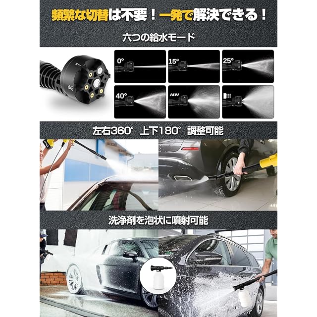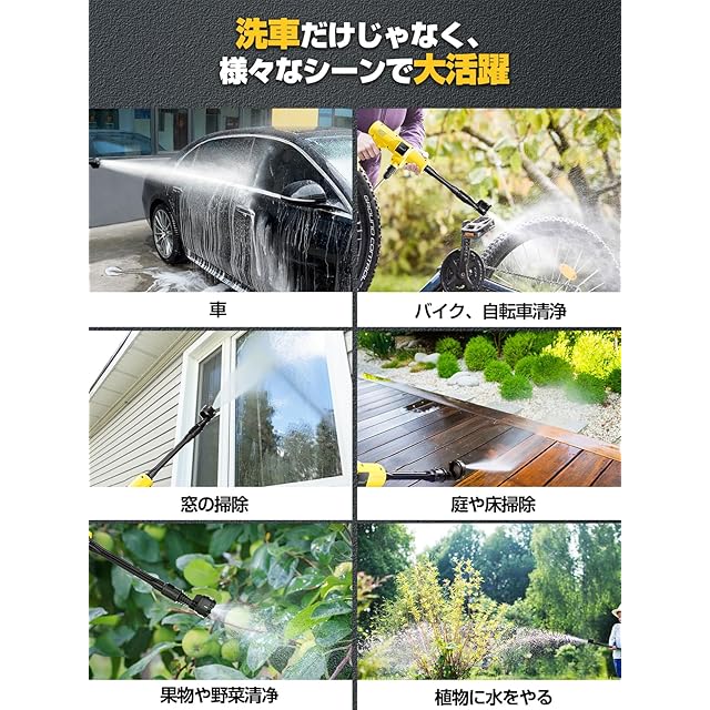 【2024新登場強化版】高圧洗浄機 コードレス 充電式 洗車機 20000mAh バッテリー マキタ互換バッテリー 残量表示 洗車店監修 750W自吸式 噴射距離10M 高圧洗浄機 洗車 家庭用 2段階 6in1ノズル 高性能 収納ケース 持ち運び便利 庭/屋外/階段/ガラス/ブロック塀/玄関/ベランダ/浴室/年末大掃除/キャンプ 日本語取扱説明書 黄色