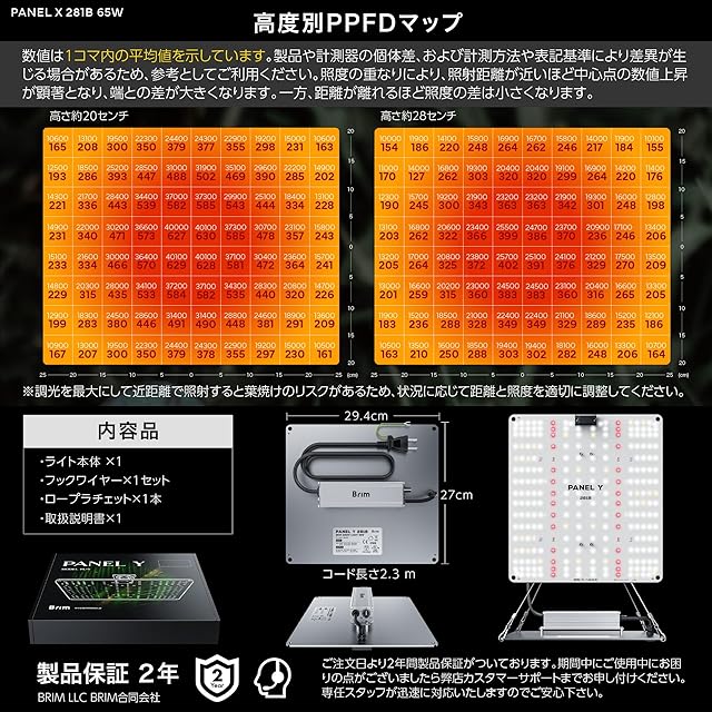 【公式】BRIM(ブリム) PANEL Y 植物育成ライト LED パネル 【国内ブランド】 無段階 調光機能 IP65 防水処理 LM281B+ フルスペクトル UVA+IR フックワイヤー付き Max 65W (PANEL Y 281B 昼白色 (65W), 1)
