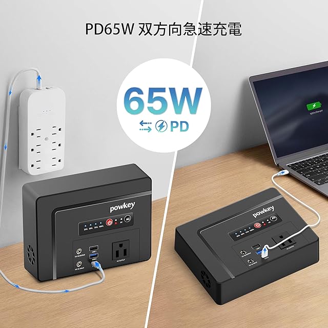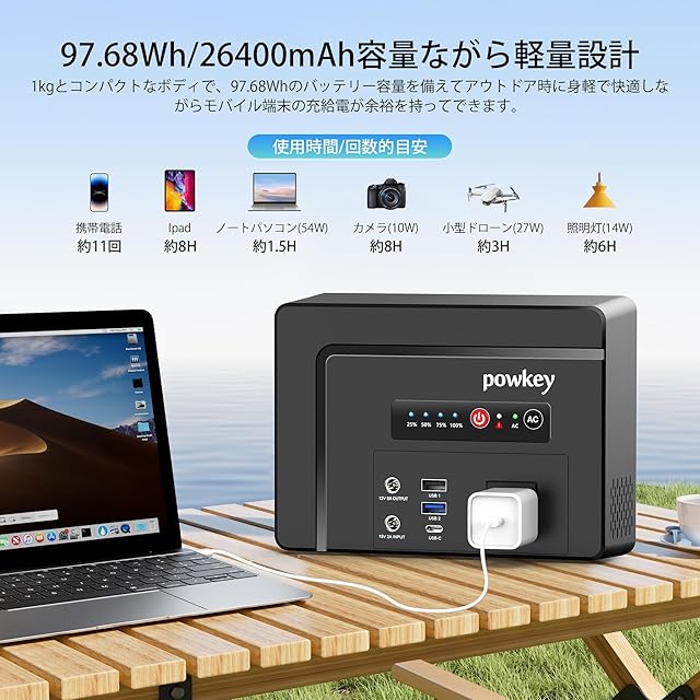 Powkey ポータブル電源 G100 97.68Wh/26400mAh ぽーたふる電源 大容量 ポータブルバッテリー 小型 AC100W PD65W デュアル充電 USB-C急速充電 キャンプ アウトドア 停電対策 家庭用