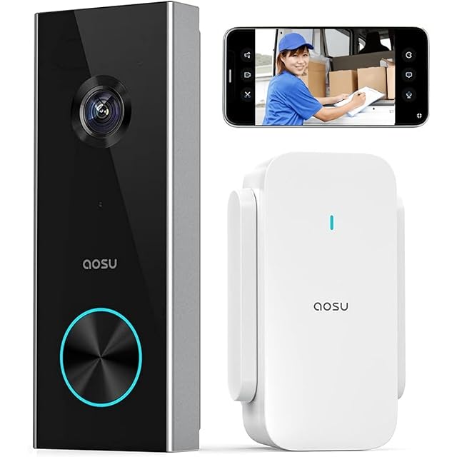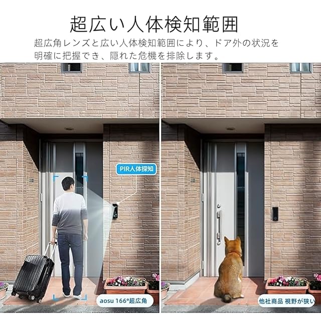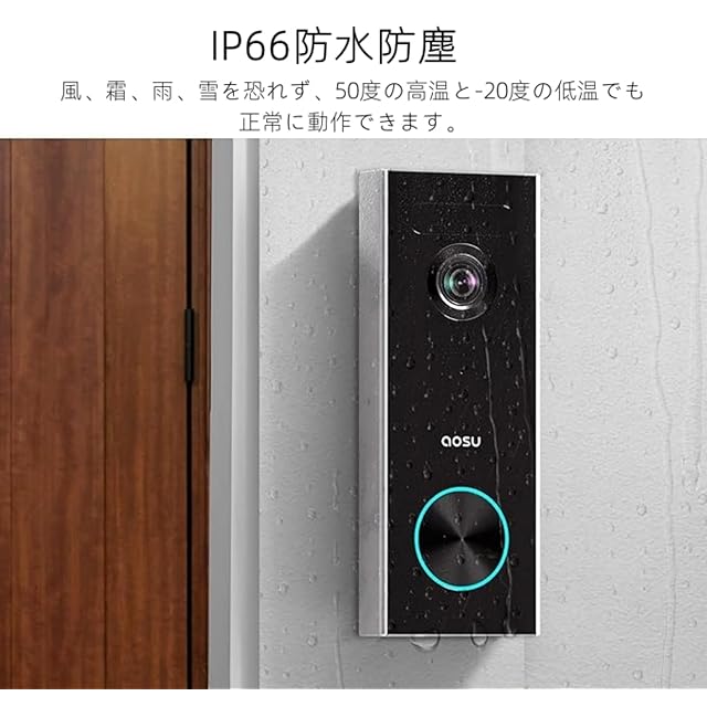 aosu インターホン ワイヤレス 工事不要 充電式 wifi必要 166°広角 2K画素 ip66防塵防水 2.4Ghzwifiのみ対応 人体検知自動アラーム アプリ双方向通話 家族共有 動画再生 無料クラウド保存 Alexa対応