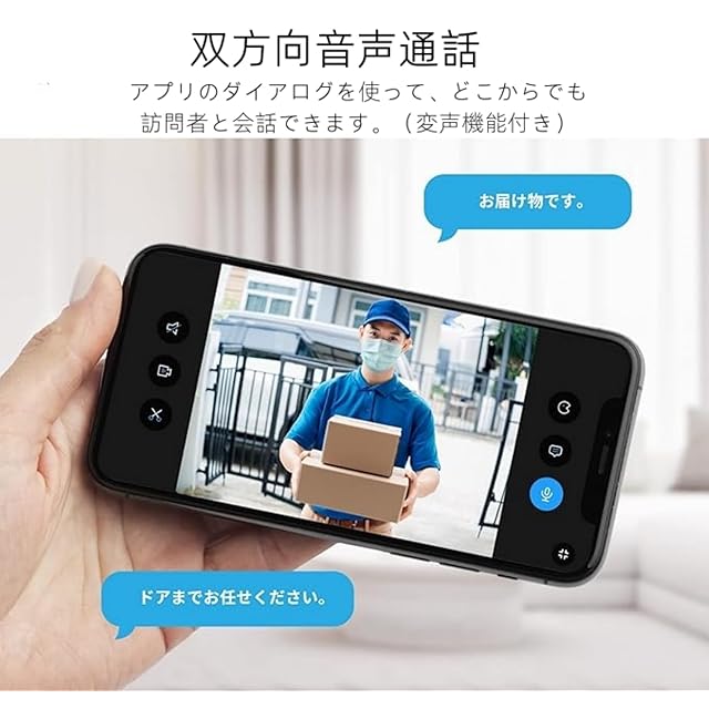 【変声機能&音声メッセージを送信】ドアベルは双方向音声会話に音声変更機能を追加します。ワンクリックでピエロの声やおじさんの声に変更でき、一人暮らしのプライバシーを守ります。地下鉄など話すのが不便な場所でドアホンから着信を受けましたとき、ドアベルにあらかじめ設定されている音声メッセージを送信するかどうかを選択できます。