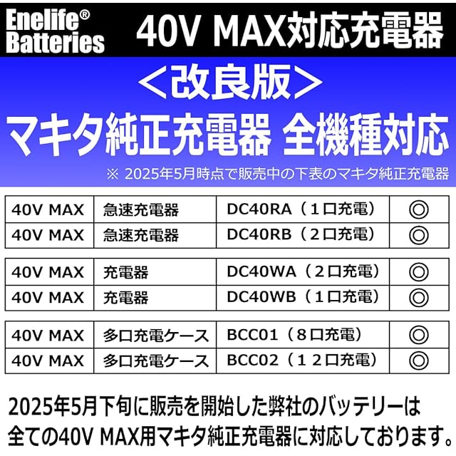 ◆1◆<充電器>本製品は全ての40V MAX用マキタ純正充電器にのみに対応しております。互換充電器をご使用の場合は保証適用外になりますのでお使いにならないでください。
