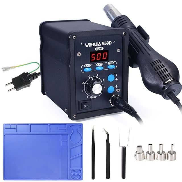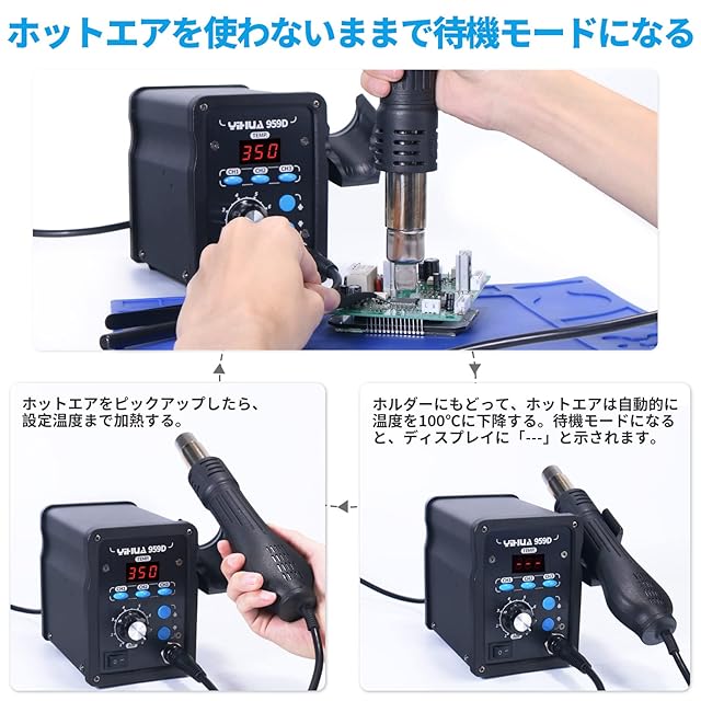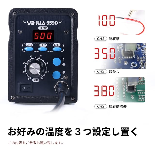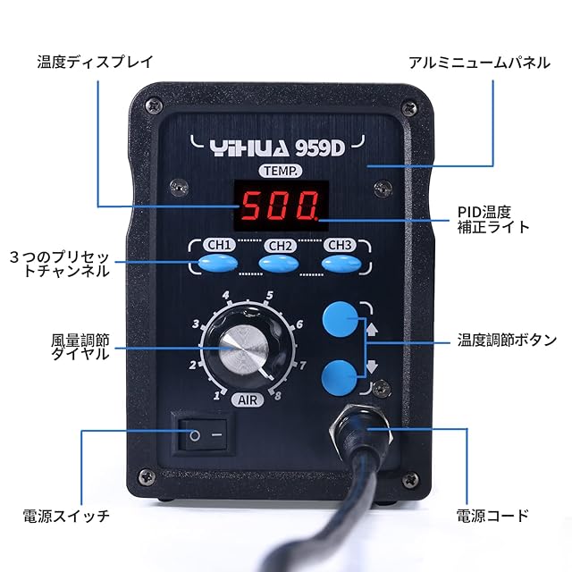 YIHUA 959D リワークステーション ホットエアーガン 温度制御型(100℃~500℃) PSE認証 日本語取扱説明書付き 高速加熱 低騒音