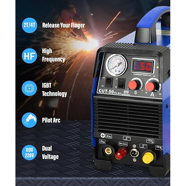 多重適合性:このプラズマ切断機は、高度な高周波インバーターテクノロジー、完全なデジタル制御を使用し、110V-220V幅の電圧入力と互換性があります。 ARCガイドシステムは、切断面に接触せずに切断でき、導電性材料にカットできます