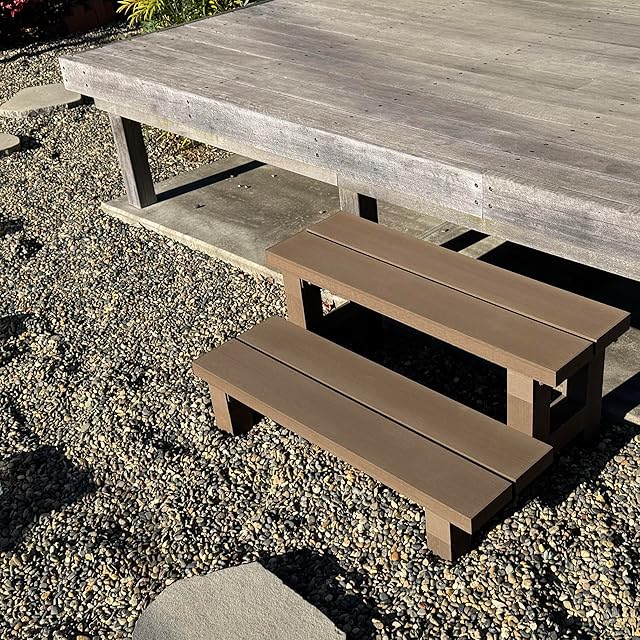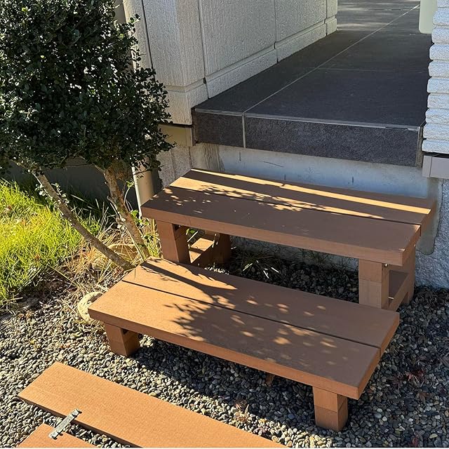 アイガーデン(igarden) アイウッド 人工木 2段ステップ ダークブラウン 幅80cm奥行50cm高さ35cm アイガーデンオリジナル 人工木ウッドデッキ 段差解消 花台 沓脱石 縁台 ステップ2段 階段(ダークブラウン)