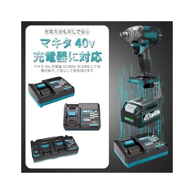 【完全の互換性】純正品のマキタ 40Vmax バッテリー: BL4025 BL4040 BL4040F BL4050 BL4050F BL4060 B4080 B4080Fなどに互換可能です。マキタ 40v 充電器:DC40RA DC40RB DC40RCなどに充電できます、充電方法も同じです。ご安心して使用頂けます。