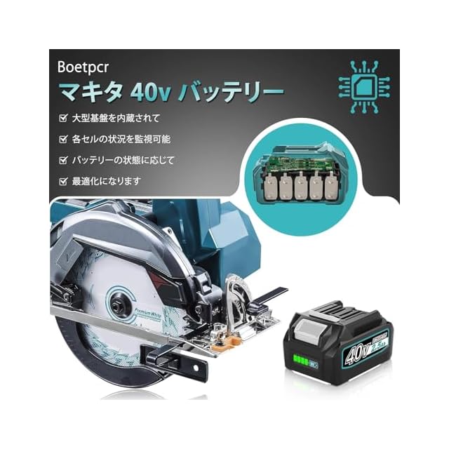 【大型BMS基盤&多数保護機能】マキタ 40Vmax バッテリーは内部に大型BMS基板に過電流保護、過充電防止、過放電防止、短絡保護、温度保護の回路保護制御が設置されており、個別のセールを監視回路线線はちゃんと入って、商品性能と耐久性が純正品と遜色がないです。