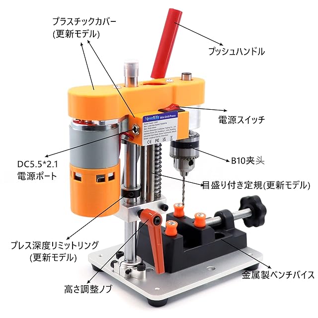 NovelLifeミニ小型卓上ボール盤直流電気台ドリル家庭用ダイヤベッド変速DIY木工手芸品精密修表工具アップグレードモデル