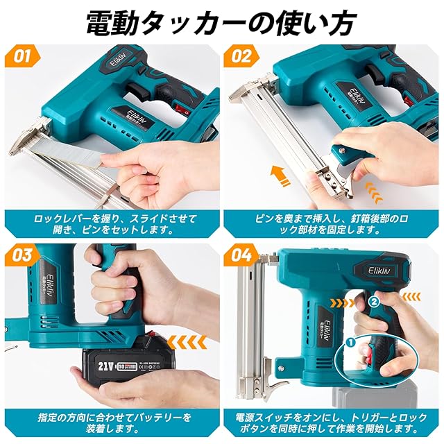 ❤【コードレスピンタッカー・Elikliv / マキタの 18V バッテリー対応】空気ポンプが不要で、手軽に使えるコードレスピンタッカーです。場所や状況に拘束されず、コンセントのない場所やアウトドアでも作業ができます。手動式より楽に 2 倍以上作業できます。ピンタッカーは Elikliv のバッテリーとマキタ 18V バッテリー BL1830 BL1840B BL1850B などに対応できます。