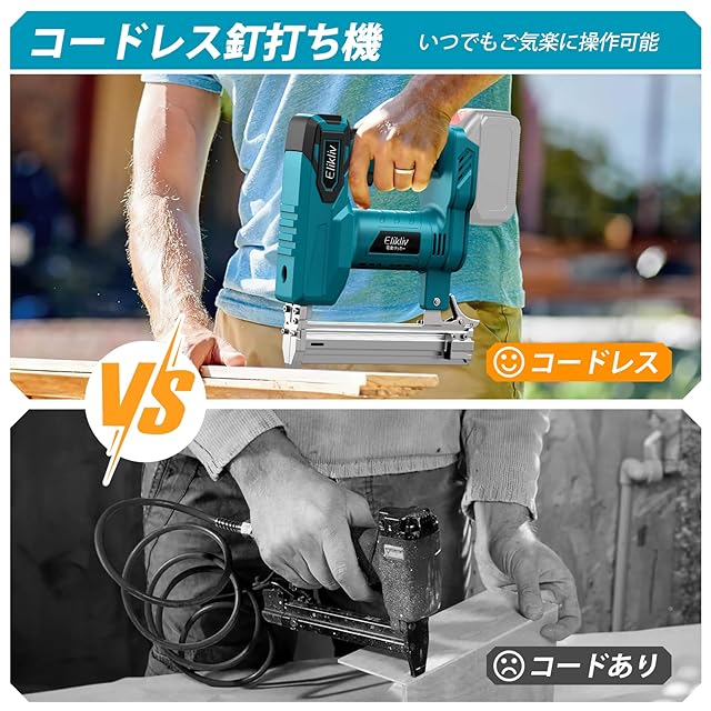 【2025年改良軽量版】Elikliv 電動タッカー 釘打ち機 ピンタッカー 充電式 コードレス 軽量 仕上釘打ち機 強力 空気ポンプ必要ない 単発連続 誤射防止 DIY 大工 家具 木工用 建築部材製造 軒天仮留め マキタ18Vバッテリー交換 針1000本・日本語説明書付き