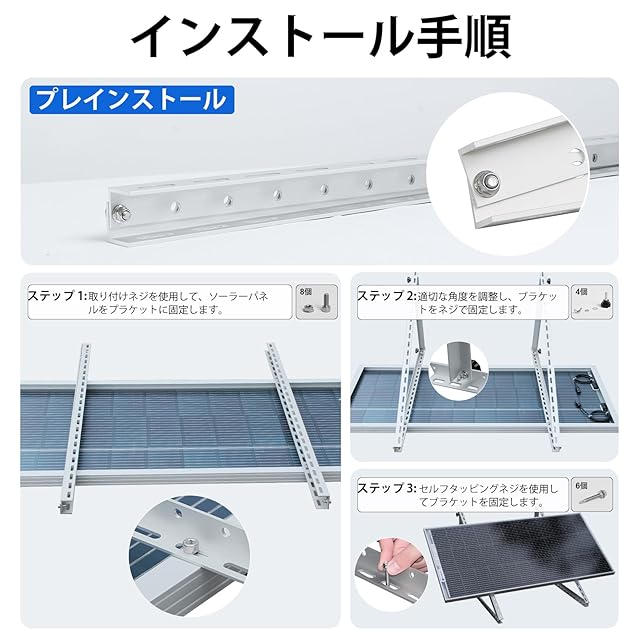 [汎用性の高いアプリケーション] - ソーラーパネルマウントキットは、RV、ボート、キャンピングカー、小屋など、幅広いオフグリッドシステムに最適です。 (日陰を避けて、より多くの日光を受け取ることを避けてください)