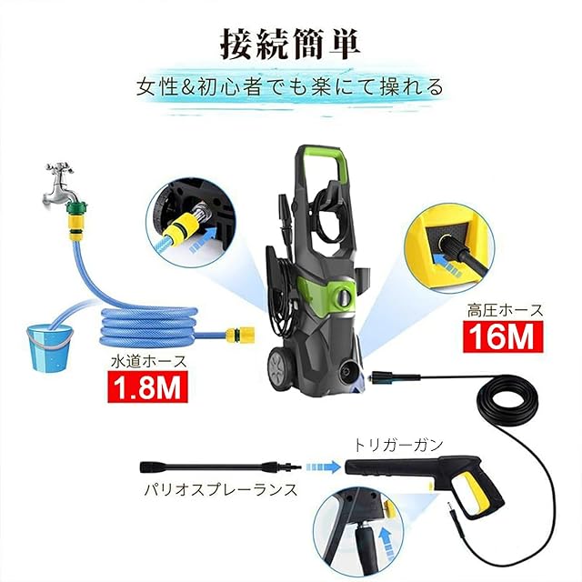 【1年保証&安心の品質保証!】 丈夫でしっかりとした作りなので長く使うことができる高圧洗浄機です。ご購入日より1年間製品保証が付き、万一部品が不足、不具合の場合、ご注文番号を添えてAmazon購入履歴よりご連絡くださいませ。24時間以内に対応いたします。本社の家庭用高圧洗浄機は購入日より一ヶ月以内に無条件で返品・交換できるサ-ビス、1年以内に部品に問題がある場合は、部品交換サービスを提供させていただきます。ご安心下さい。また、ご使用中に何かご不明な点がございましたら、いつでもご連絡ください。
