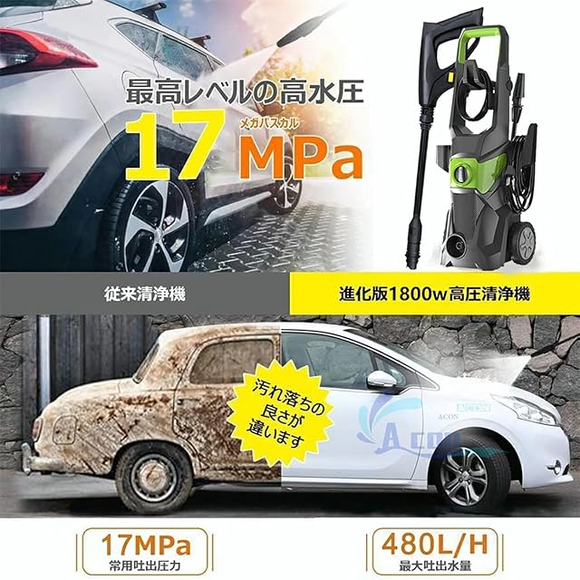 【 強力高圧&東西日本兼用】 2024最新モデルの高圧洗浄機は、最大吐出量8.0L / Min、最大吐出圧力:17MPaが実現されています。周波数は50/60Hzとも対応でき、東西日本適用!高圧で噴射する水の力で窓や車についた頑固な汚れを落としてくれる高圧洗浄機です。耐久性抜群!