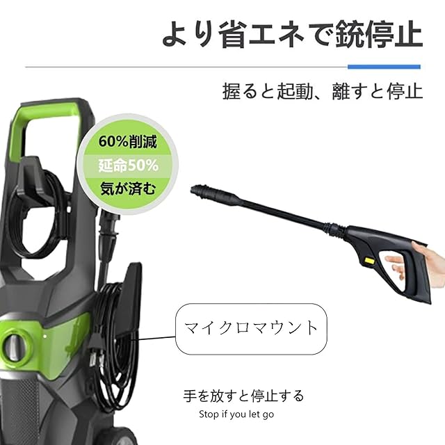 【 多機能使用】フォームノズルは洗浄剤を泡状にして吹き付けることができ、バリオスプレーランスノズルには水圧の変化もノズルの調整でカンタンに実現できます。ノズルを軽くねじるだけで、集中モードと扇状モードを切り替えます。車、玄関まわり、駐車場の床や屋根、お風呂場、ブロック塀や外壁、窓、ベランダ、苔汚れ、植物なども利用できます。お掃除のあらゆる場面で大活躍する。