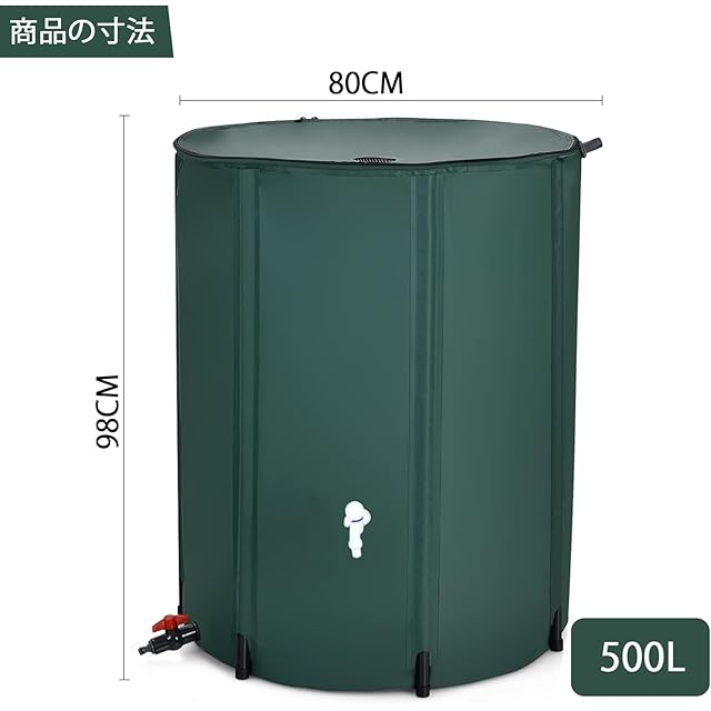 雨水タンク 集水器 貯水タンク 500L 屋外折りたたみ式ポータブル ウォーターバケツ 防災 家庭用 屋外用 園芸植物灌漑可能 雨を貯めて節水 貯留タンク 簡単設置 雨水を貯めて節水可能 農業 緊急給水 雨水収集用 (500L) [並行輸入品]