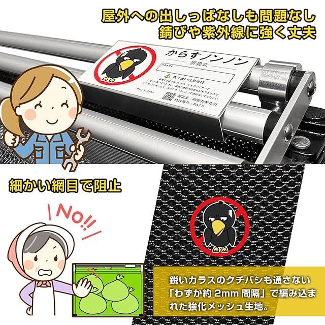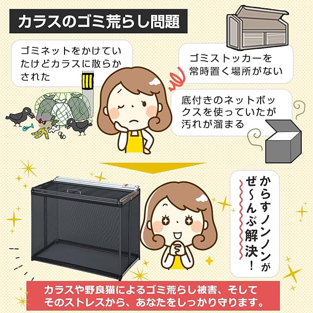 カラスよけ ネット 屋外 ゴミ箱 収集庫 ゴミストッカー 防鳥ネット 大容量 ネットボックス 折りたたみ 日本製 ゴミ収集箱 ゴミステーション 軽量 コンパクト からすノンノン ブラック 大 90cm