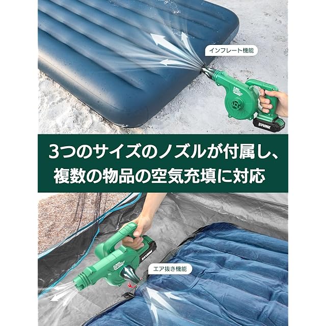 【2025新型空気入れ/空気吸引機能ブロワー】サイズの異なる3つのノズルが付属(Mサイズ:16mm、Lサイズ:22mm、Sサイズ:5mm)、屋内でも屋外でも、浮き輪、インフレータブルボート、インフレータブルソファ、ヨガボールなどを簡単に膨らませたり収縮させたりできます。送風機、集塵機だけでなく、空気注入や抽気にも応用でます。