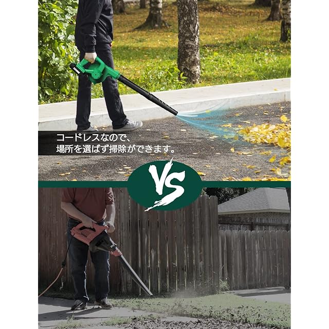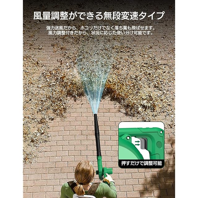 【コードレス&ポータブル】コードレスブロアーなので、場所を選ばずどこでも使用できます。軽量で使いやすく、最適な快適さ、最小限の圧力、および手の疲労を軽減する滑り止めハンドル グリップを備えています。無段変速スイッチでブロワーの風量を作業内容や環境に合わせて調整可能、様々なシチュエーションに対応できます。さらに、強風の場合でも、周囲の人々に迷惑をかけることはありません。