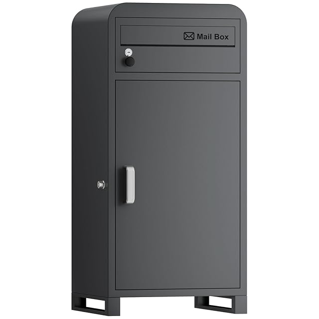 【複数投函可能/ポスト一体型/大容量】 VARNIC 宅配ボックス 組み立て不要 屋外 大容量 宅配BOX 防水・防錆 据え置きベース・マグネットシート付き 郵便受け 盗難防止 両開扉 戸建て用 個人宅 (グレー)