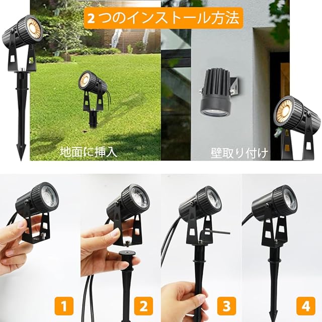 「安全性&低圧」この製品には12Vの低電圧降下が装備されており、家庭用電圧を12Vの安全な低電圧に変換できます。プラグアンドプレイ、過熱や燃焼のリスクがなく、高圧照明よりも安全です。このスポットライトは一年中利用できます。2つのランプの間にはオスとメスのコネクターがあり、自由に交換できるため、ランプが壊れて交換できないという問題を回避できる。