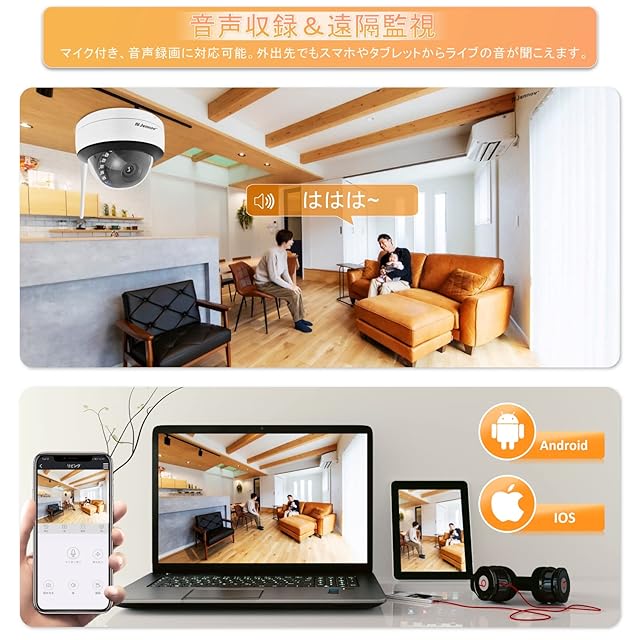 ♬【360°の設置角度を調整可能●室内屋外に自由設置】カメラのレンズを手動で360°の角度を自由に調整が可能!いろいろな場所に適切な角度で設置することができます。半円形なので、柔らかい雰囲気があり監視カメラとしてあまり目立ちません。監視カメラ設置による屋内の違和感を抑えるとともに、撮影方向を隠すことより、死角への侵入を防止可能です。また、ipカメラはIP66レベルの防水防塵規格が付き、よく雨が当たる屋外でも動作ができます。カメラ本体はアルミ合金の材質のため、耐候性もかなりあり、よく雨が降るところや梅雨の季節でも、屋外の状況を24時間監視し続け、映像を流し続ける防犯カメラです。ホコリの舞う駐車場、トンネル、農場、露天車庫、工事現場などの場所で大活躍しています。防水対応で、雨でも嵐でも屈強な設計で安心して、ご使用いただけます。また、8チャンネル搭載されているNVRなので、8台まで自由に増設できます。