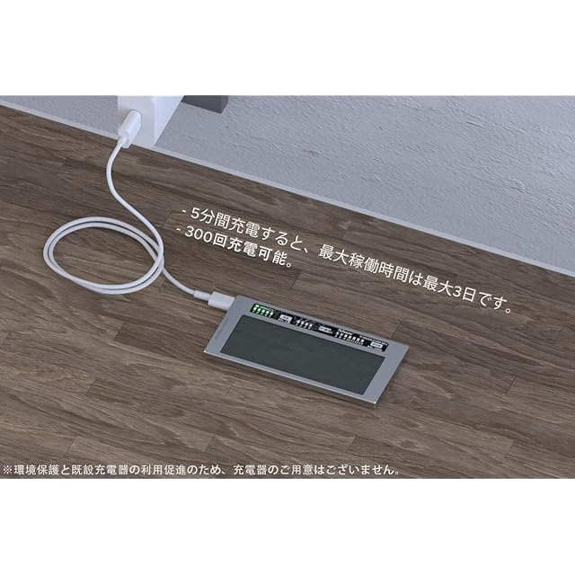 ソーラーとバッテリー駆動。 バッテリーはUSB-Cポート経由でのみ充電できます。300回充電できます。フル充電で1〜3か月間使用できます。